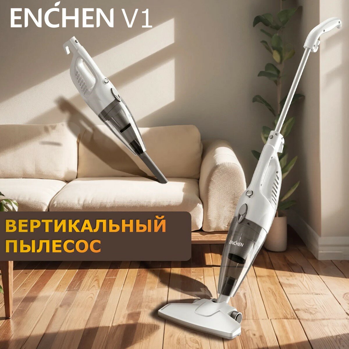 Вертикальный пылесос для дома 2 в 1 Enchen Vacuum Cleaner V1 белый, вертикальная парковка, сетевой шнур 5 метров