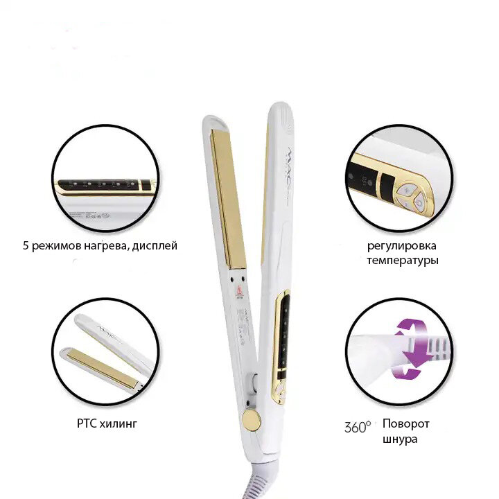 Профессиональный выпрямитель для волос, плойка с титановыми пластинами, индикацией нагрева, 5 режим нагрева интересное: