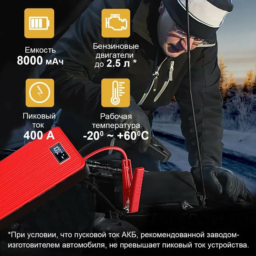 Пусковое устройство 12В, 8 000 мАч, 200/400А iCartool IC-JSD08 интересное: