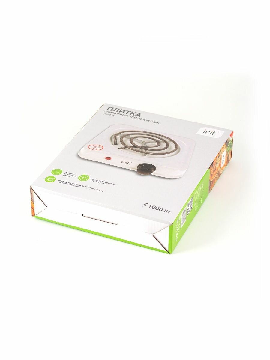 Плита электрическая Irit, IR-8005, 1000 Вт, 1 конфорка, спираль, эмаль, механическая, переключатель поворотный, белая