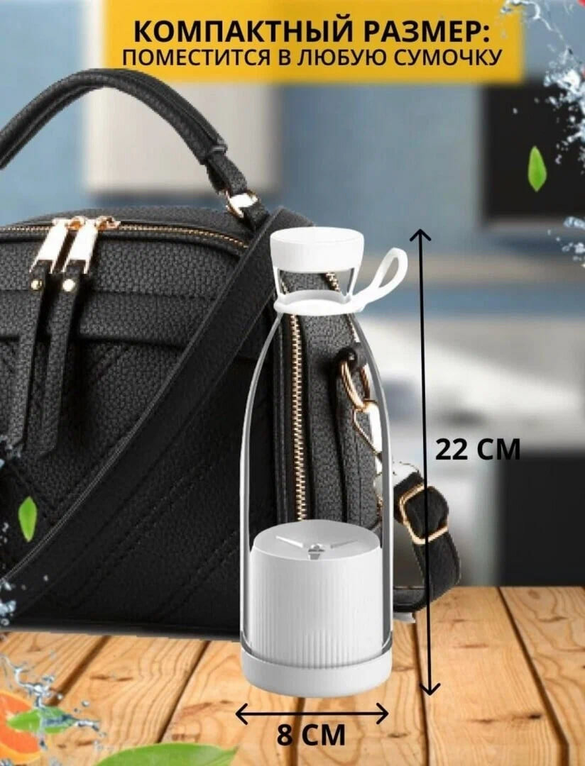 Портативный блендер для смузи / Беспроводной миксер для коктейлей из фруктов / белый, 420 мл интересное: