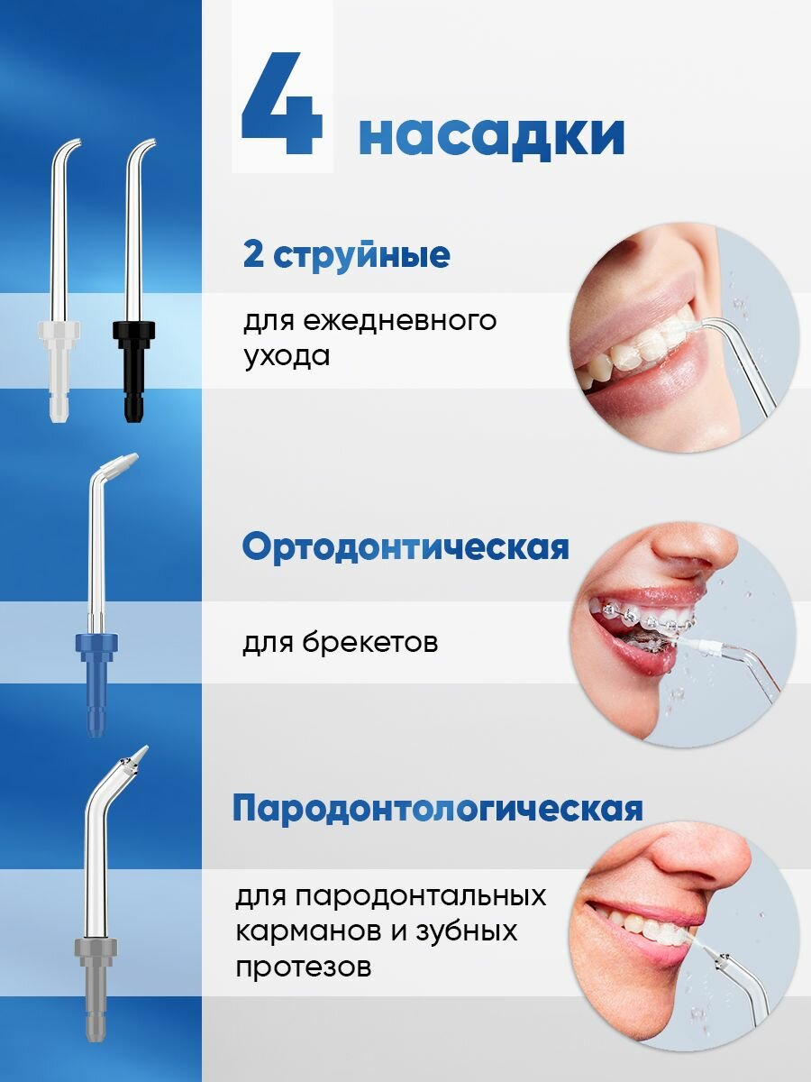 Ирригатор для зубов портативный и полости рта с насадками