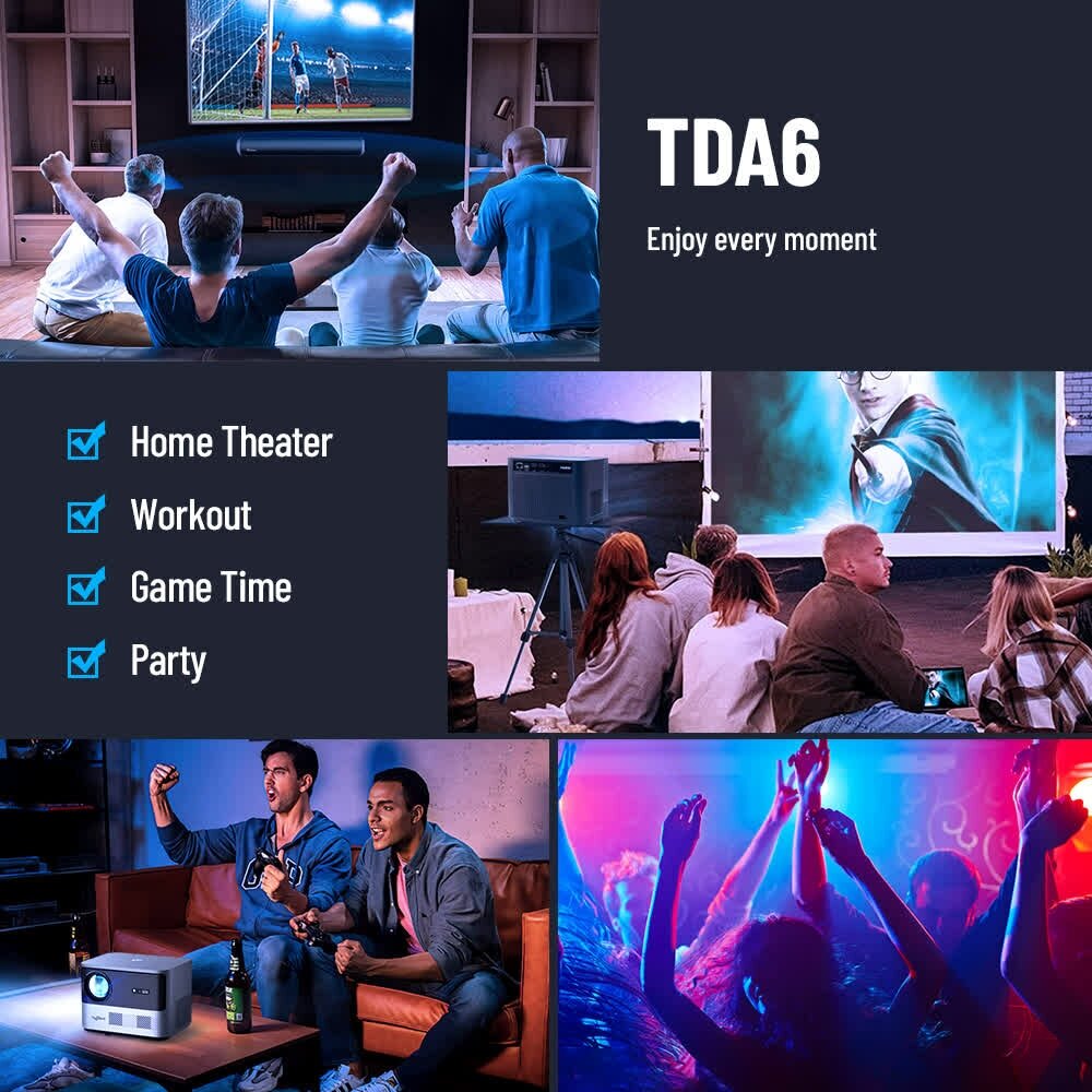 Проектор ThundeaL TDA6 Android, Full HD, 1080P, 2K 4K 5G WiFi 3D-проектор, 1LCD, черный