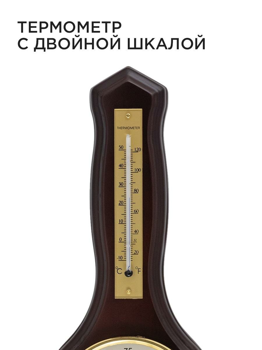 Купить Барометр настенный с термометром 33.5х13.6 см / тёмное дерево массив гевеи
