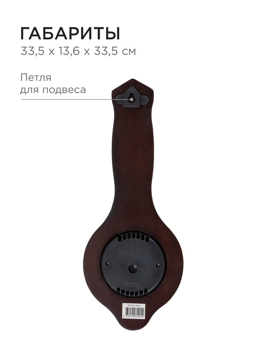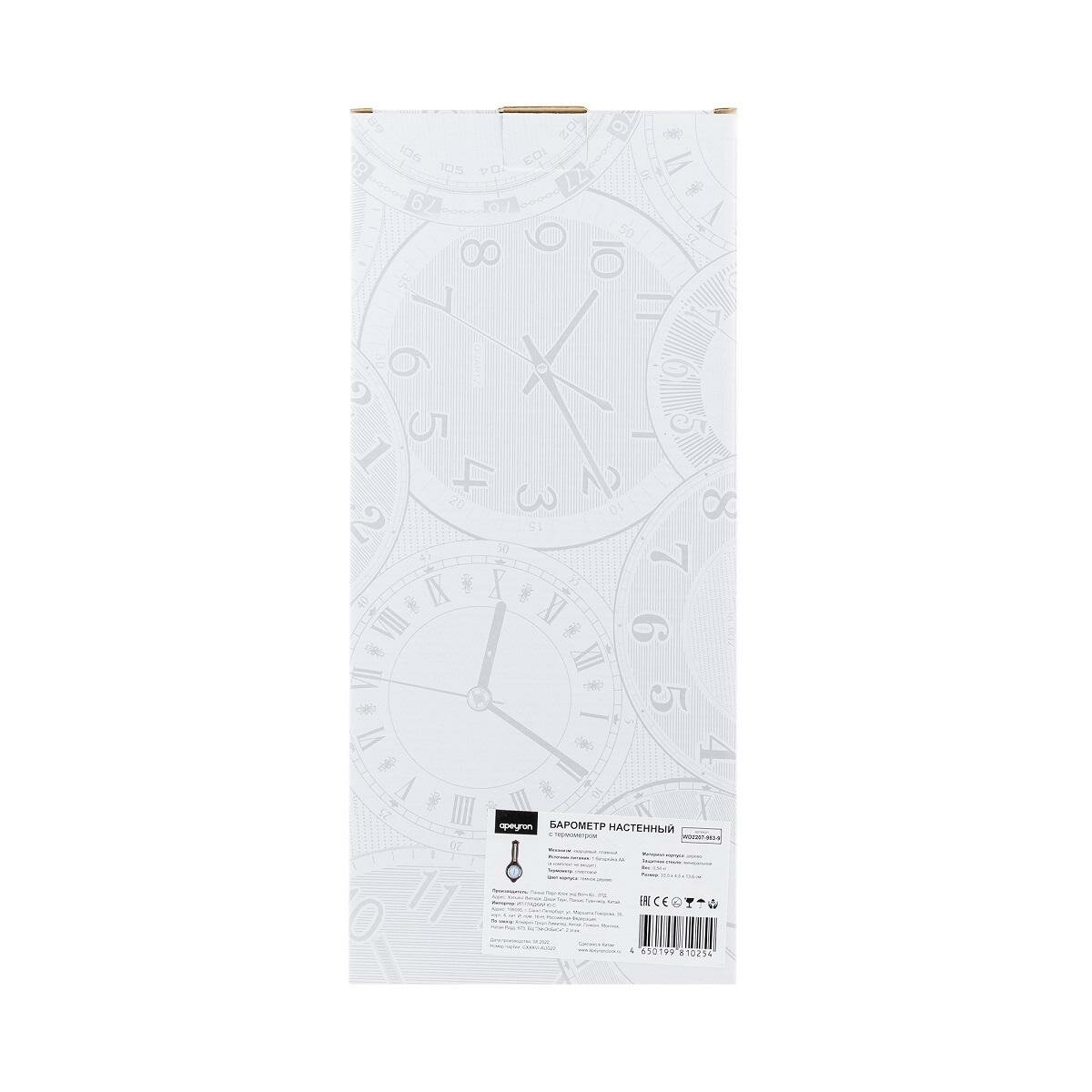 Apeyron барометр настенный, термометр, тёмное дерево гевеи, размер 33,5x13,6см, бесшумные с плавным ходом, батарейка 1аа / WD2207-983-9