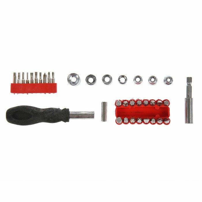 Отвертка с набором бит и головок ЛОМ, пластиковая рукоятка, 36 предметов