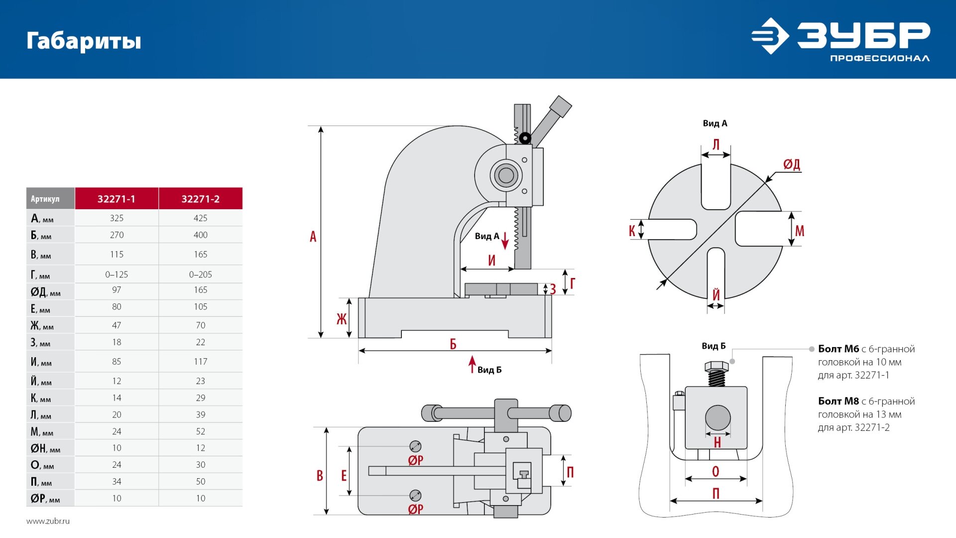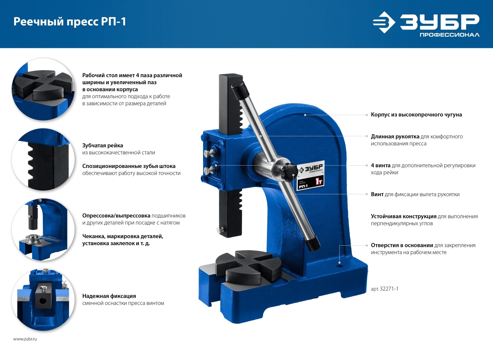 ЗУБР 1 т, реечный пресс РП-1 32271-1