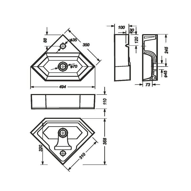 Раковина Sanita Luxe "Line", накладная, угловая, подвесная, белая