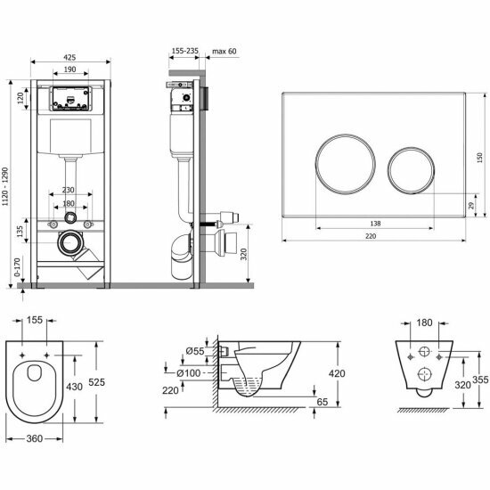 Подвесной унитаз комплект 6 в 1 Lavinia Boho Elegant Rimless 87561080: унитаз, сиденье микролифт, инсталляция, кнопка, шумоизоляция