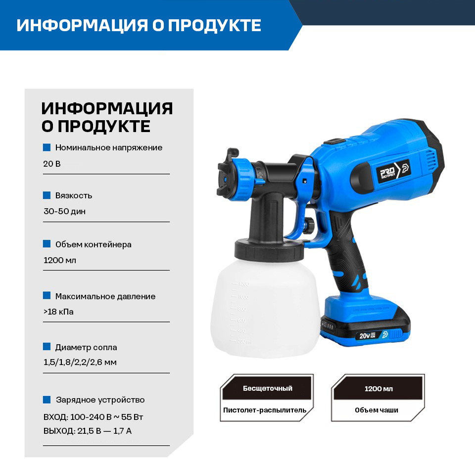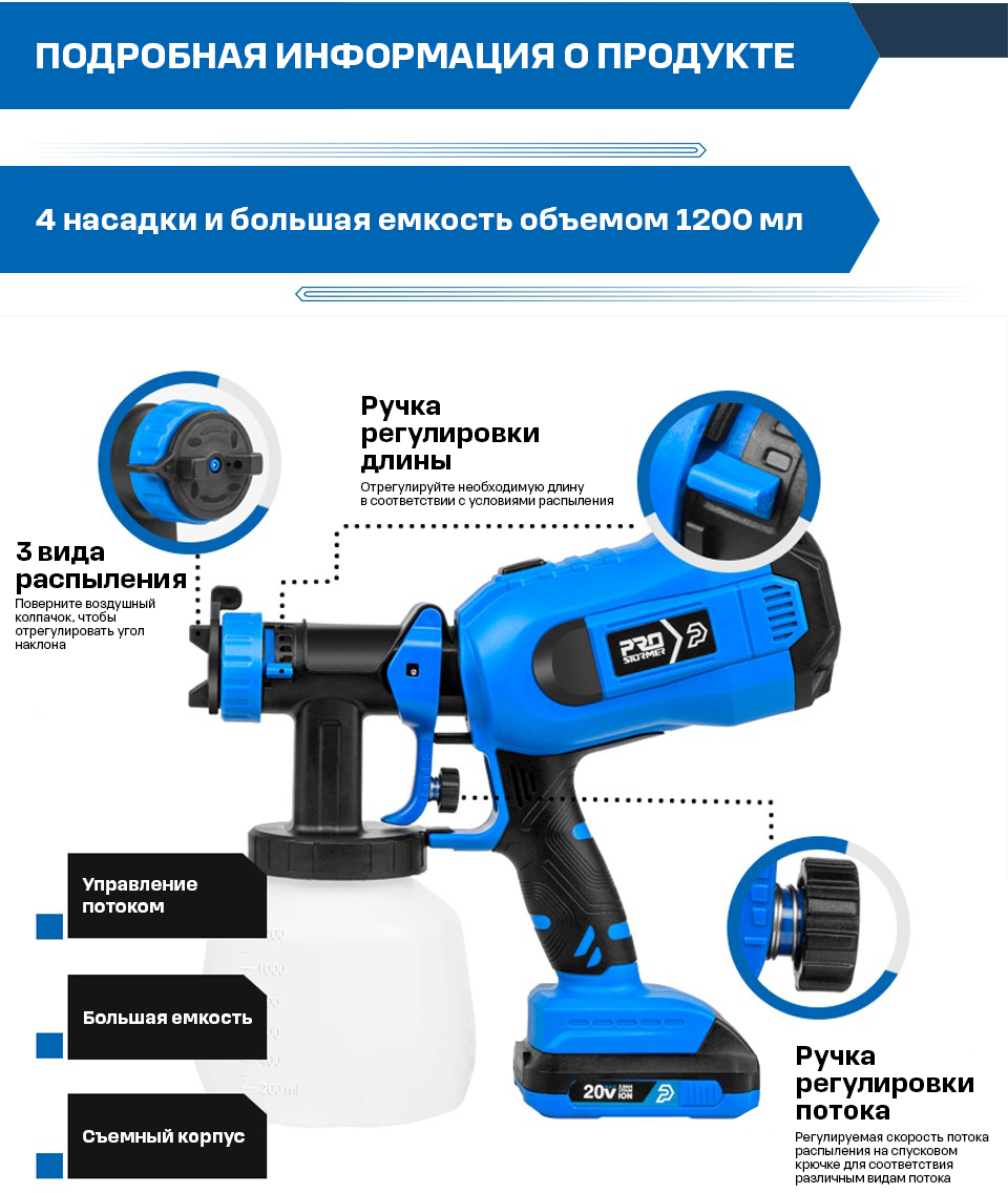 Аккумуляторный краскопульт PROSTORMER PSDSG800 интересное: