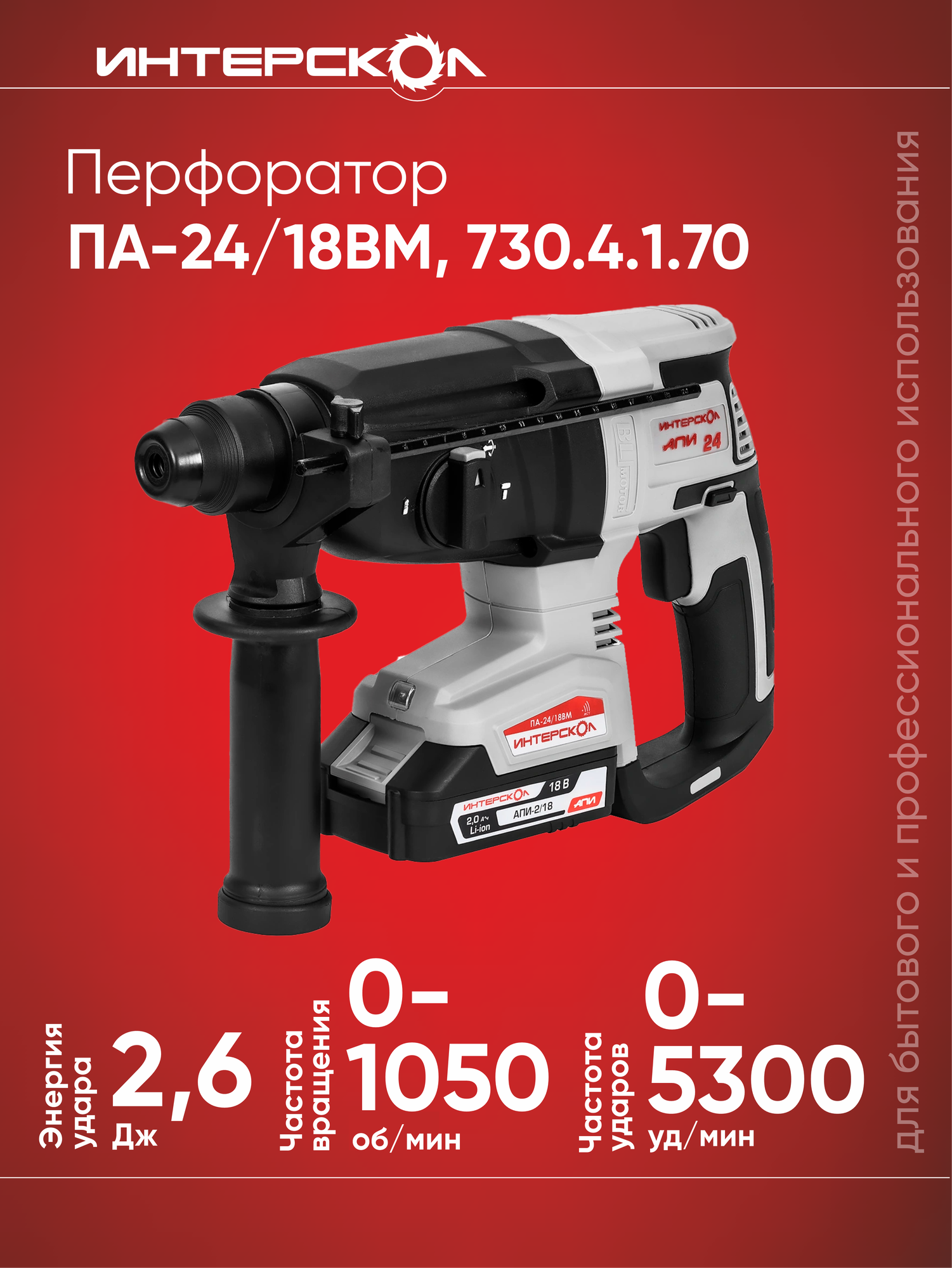 Бесщеточный профессиональный аккумуляторный трехрежимный перфоратор ИНТЕРСКОЛ ПА-24/18ВM с вентильным двигателем. интересное: