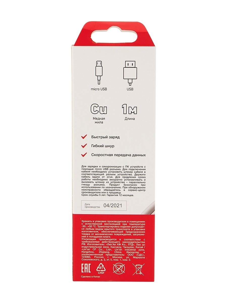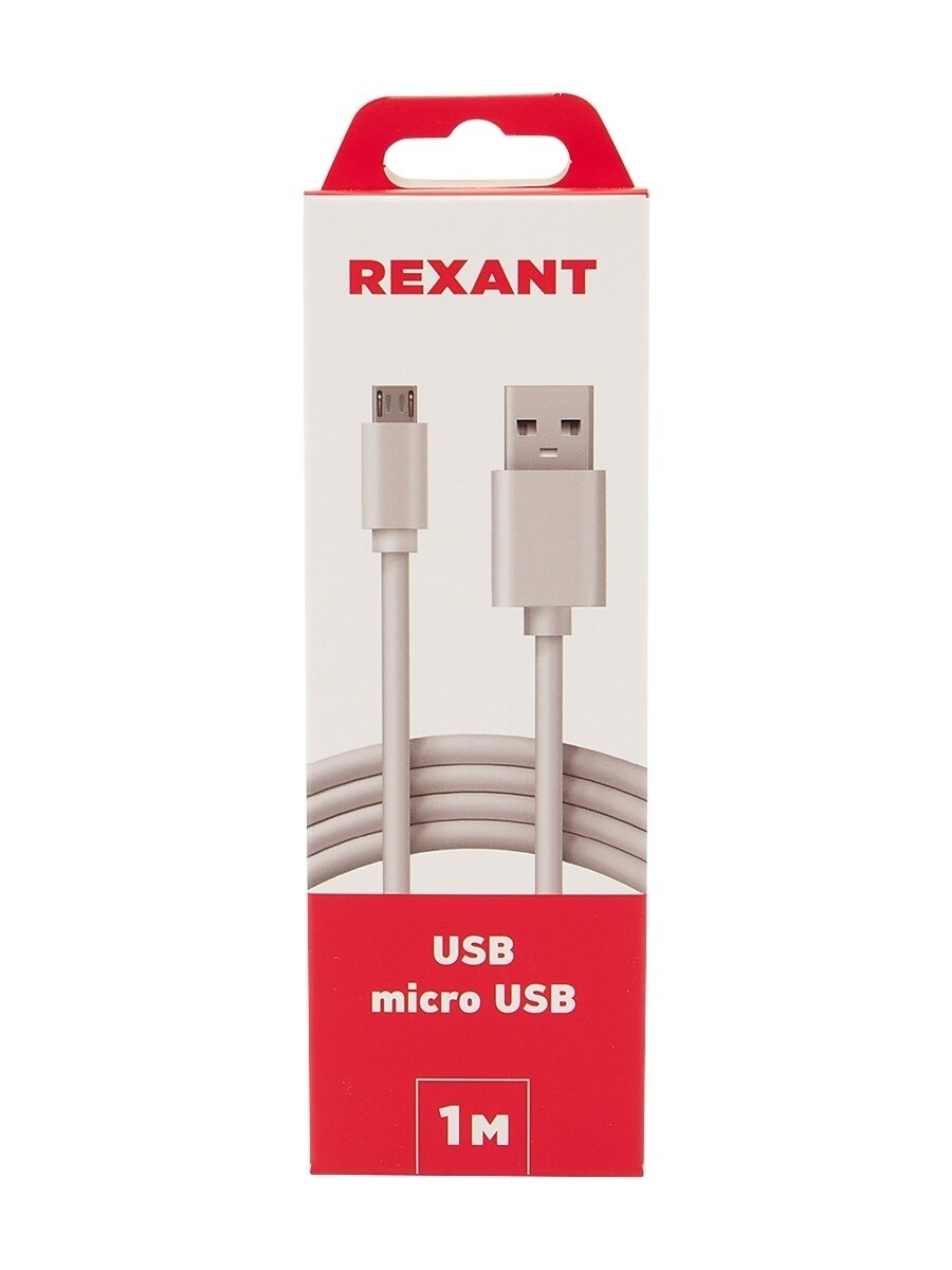 Кабель передачи данных microusb длинный штекер 1 м белый rexant 18-4269