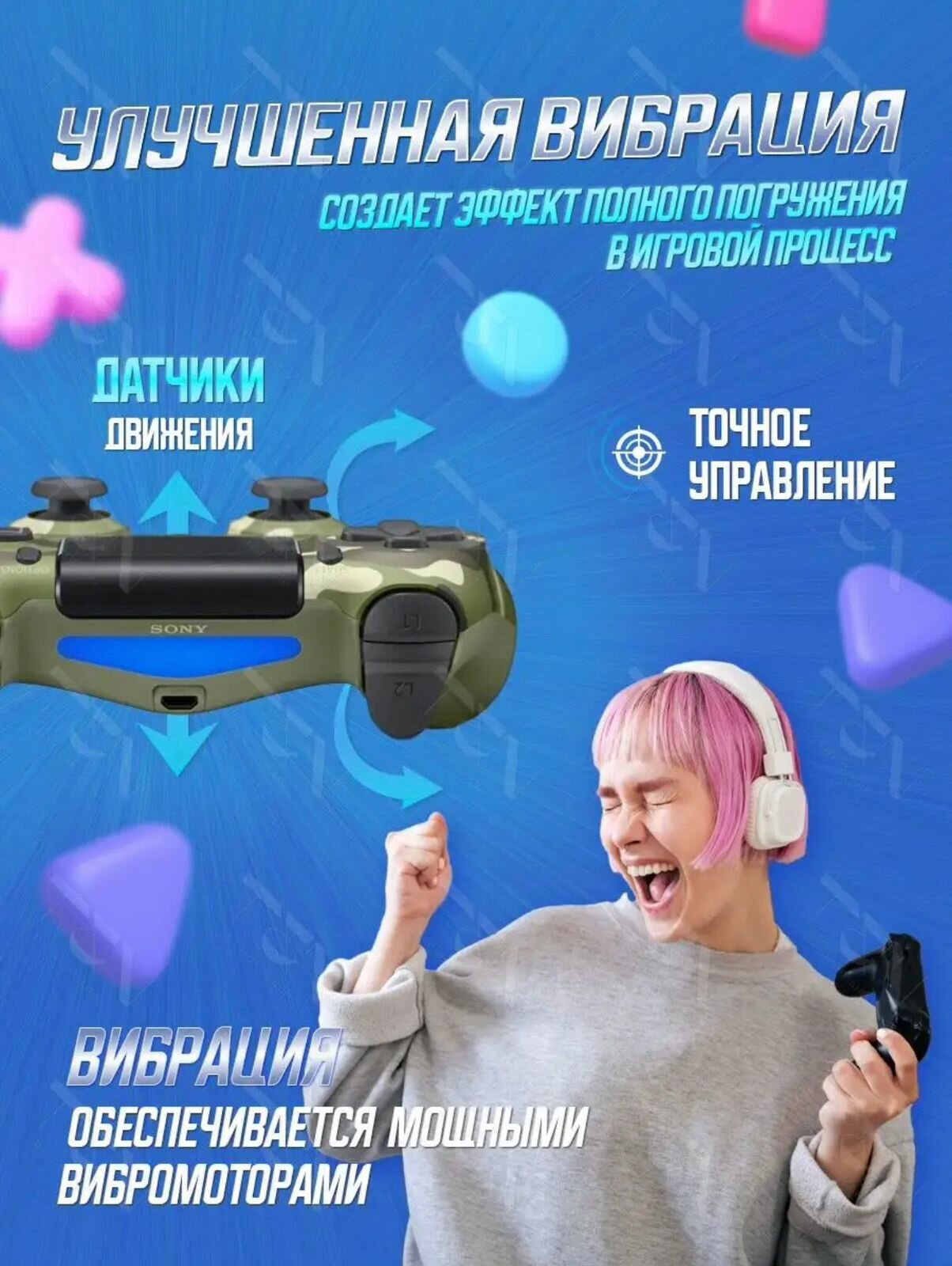 СохранитьБеспроводной геймпад для PS4, Bluetooth подключение / джойстик совместим с PlayStation 4, iOs (iPhone, iPad), Android, ПК/Хаки интересное: