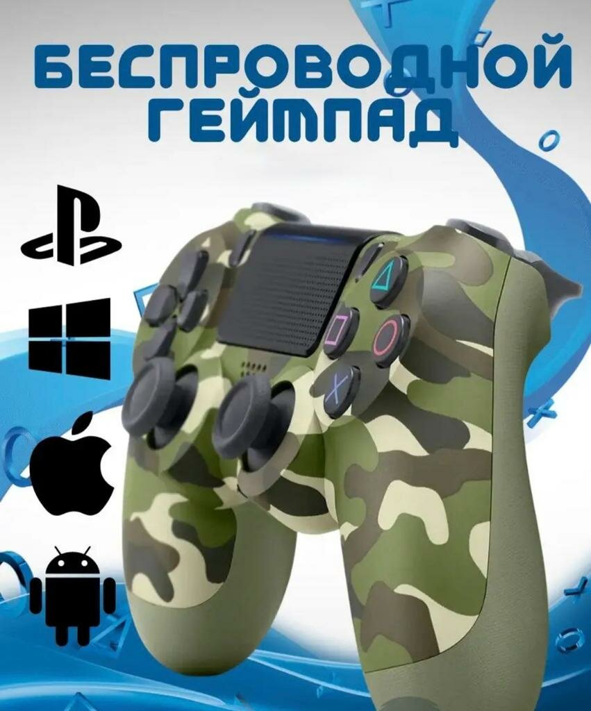 Купить Беспроводной геймпад для PS4, Bluetooth подключение / джойстик совместим с PlayStation 4, iOs (iPhone, iPad), Android, ПК/Хаки