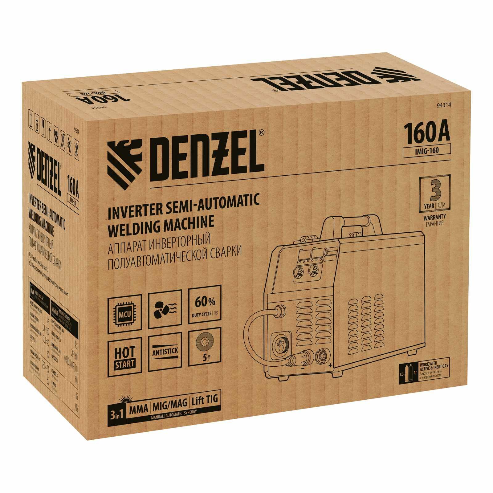 Купить Сварочный аппарат инверторный, Denzel, IMIG-160 Sinergy, 142 А, электрод, полуавтоматическая сварка