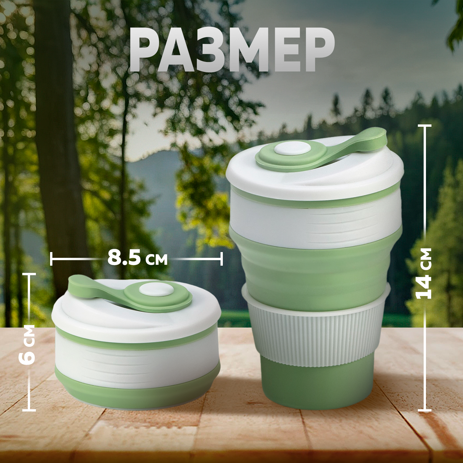 Стакан складной с крышкой "С собой" 350мл 8,5х14 см, цвет фисташковый