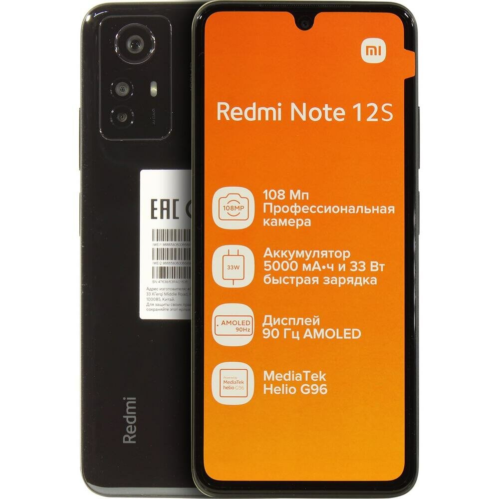 Смартфон XIAOMI Redmi Note 12S 8/256GB черный оникс (EAC)