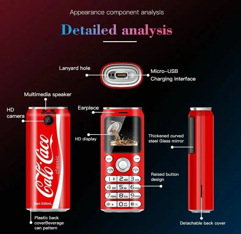 Мобильный телефон Кнопочный мини телефон с двумя SIM-картами K8 в форме колы, сотовый ,маленький, красный