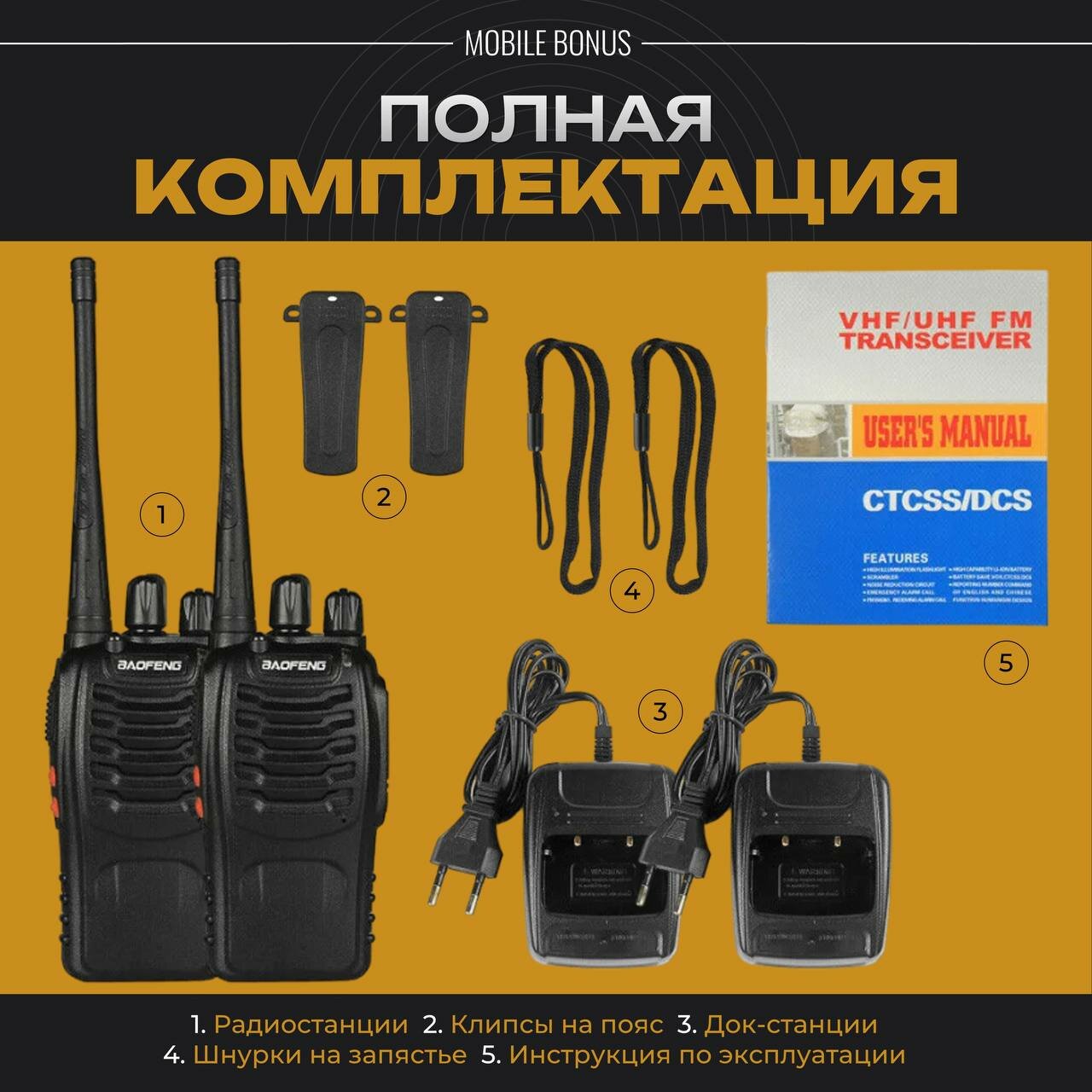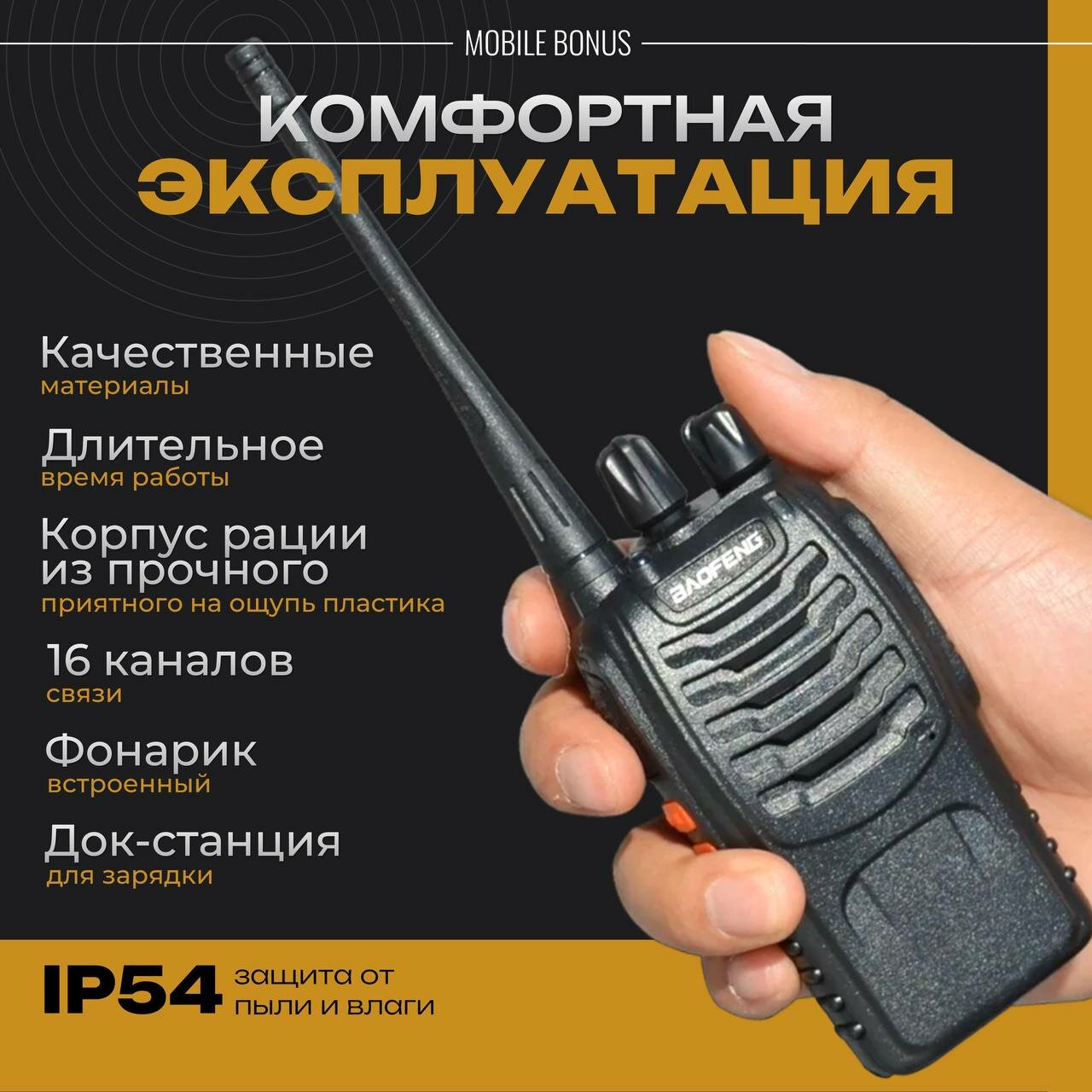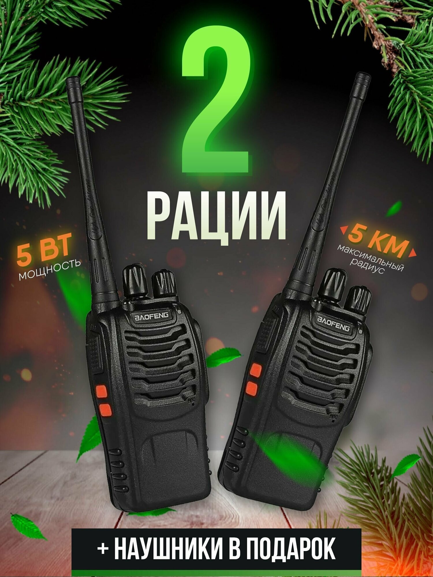 Комплект из двух раций Baofeng BF-888S + Гарнитура, Радиостанция для охоты, туризма и стройки, Портативный радиоприемник, Для детей и взрослых, Туристическая, автомобильная