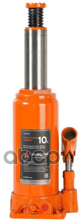 Купить Домкрат бутылочный 10т (min - 230 мм max - 460 мм) (aj-b-10), AIRLINE AJB10 (1 шт.)