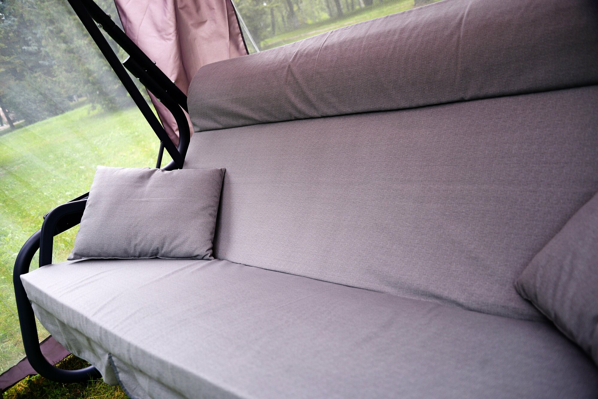 | Плюсы: | Качели красивые. Смотрятся мощно. Удобный и мягкий диван. Три человека разместятся с комфортом. |