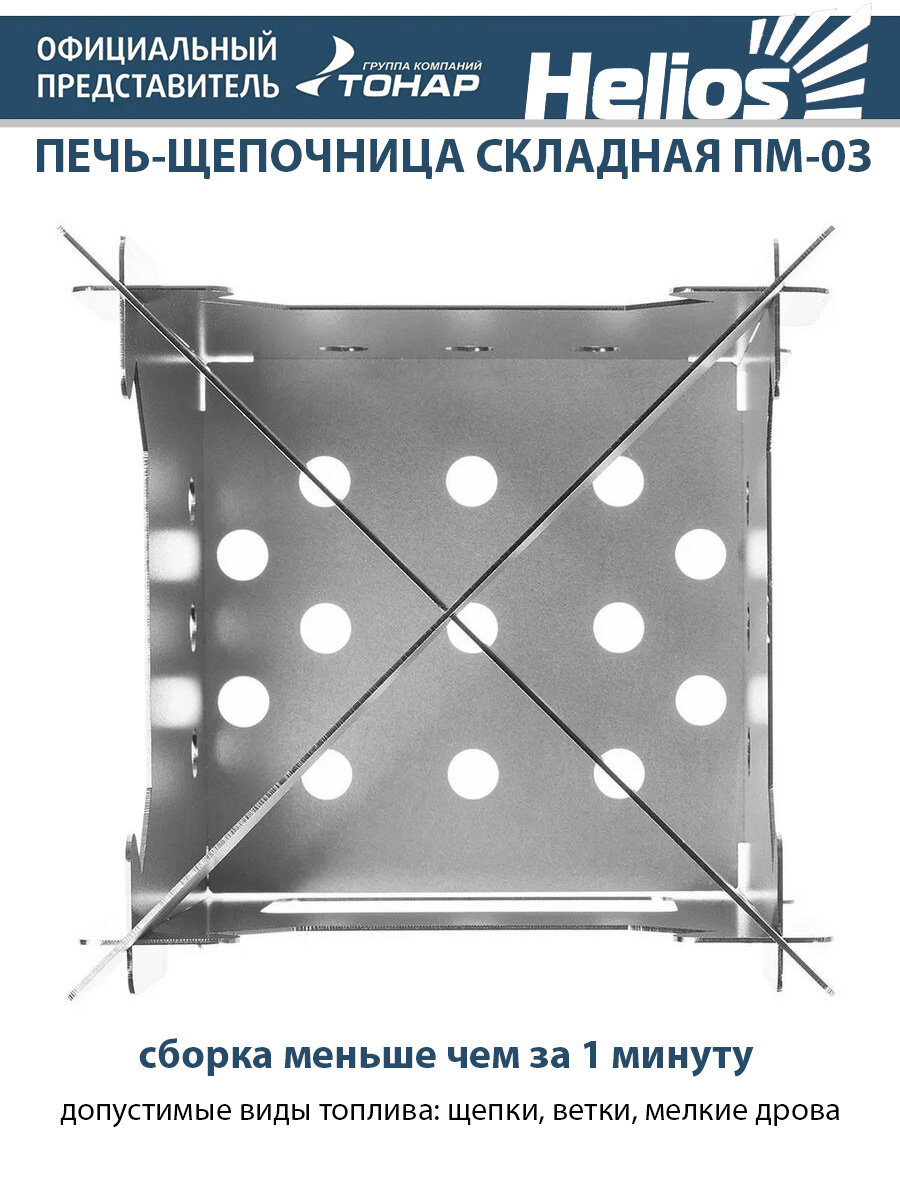 Helios Печь-щепочница складная ПМ-03 сталь 1мм (T-HS-PM-03) Helios (, 112х112х170мм)