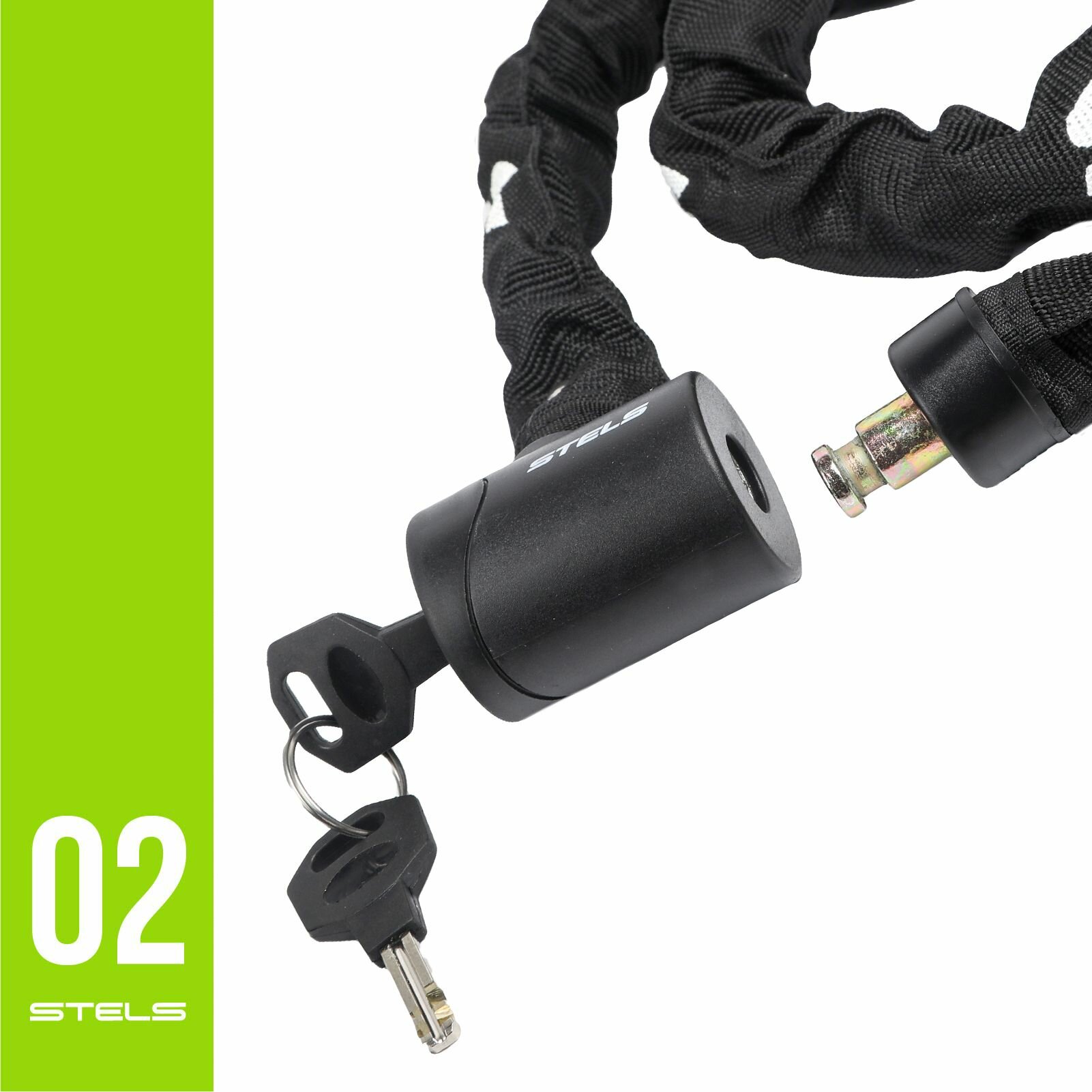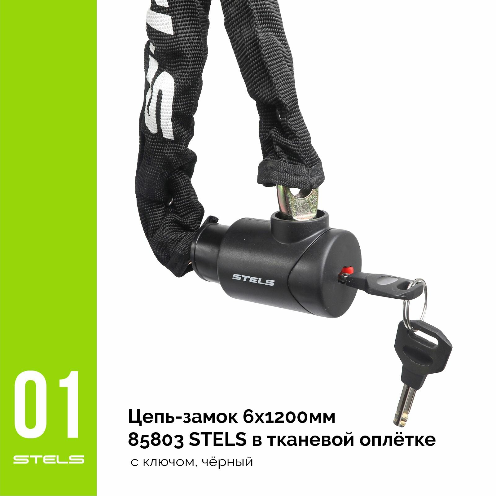 STELS Цепь-замок 85803 в тканевой оплётке, с ключом, 6x1200 мм, чёрный 540041