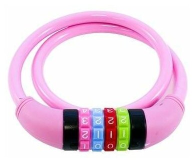 Замок велосипедный кодовый противоугонный тросовый авангард ВС-Т10К (650 мм) техно пинк