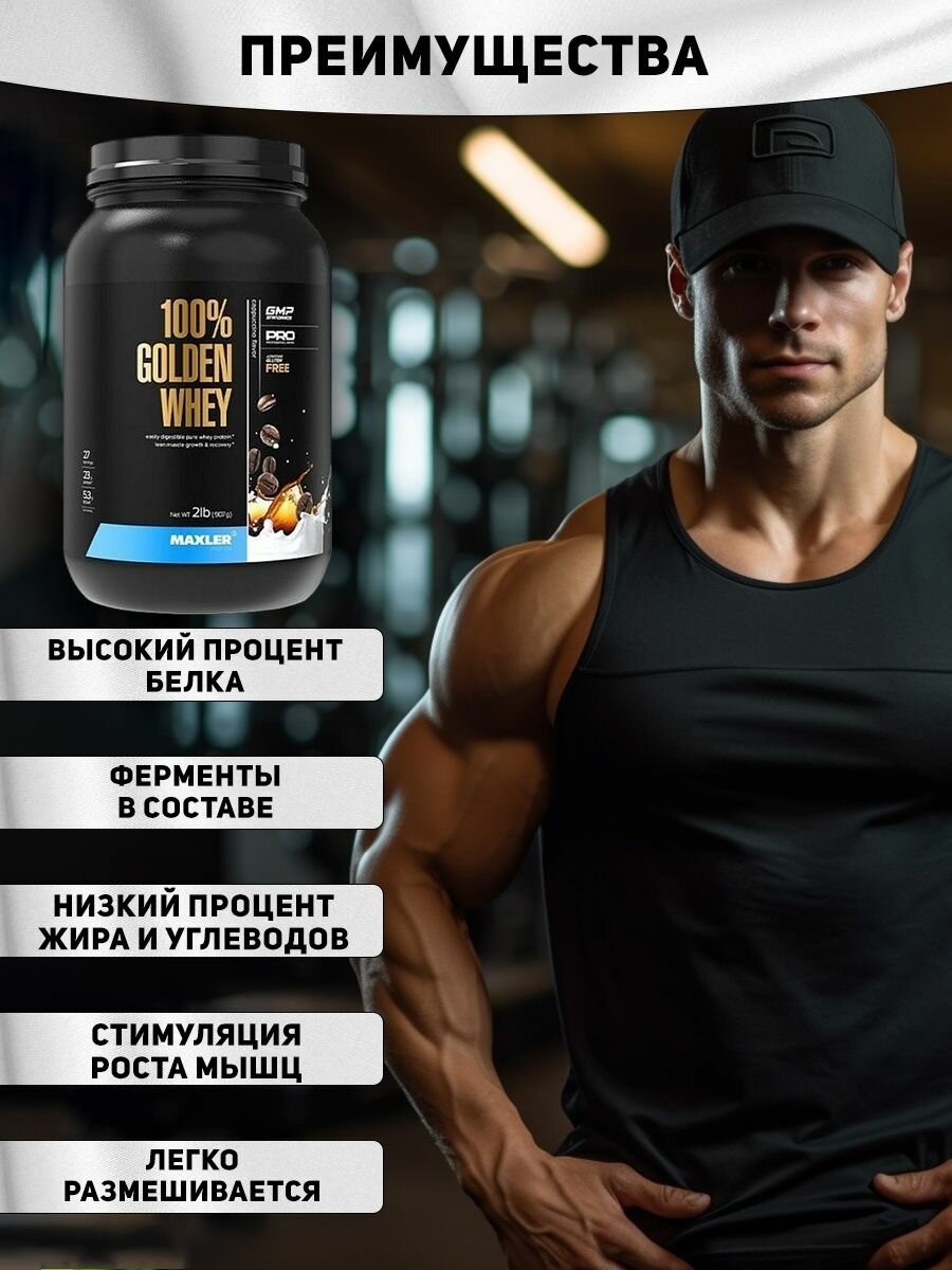 Чистый сывороточный белок премиум класса 100% Golden Whey Protein 908 гр 2 lb (Maxler) Капучино