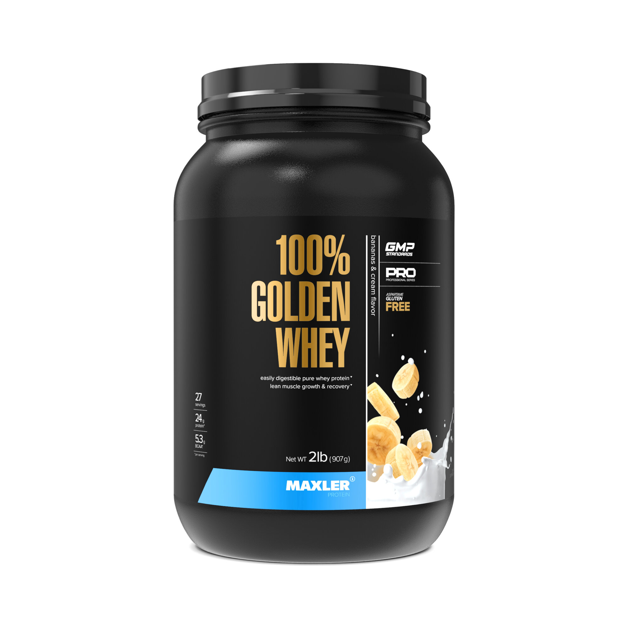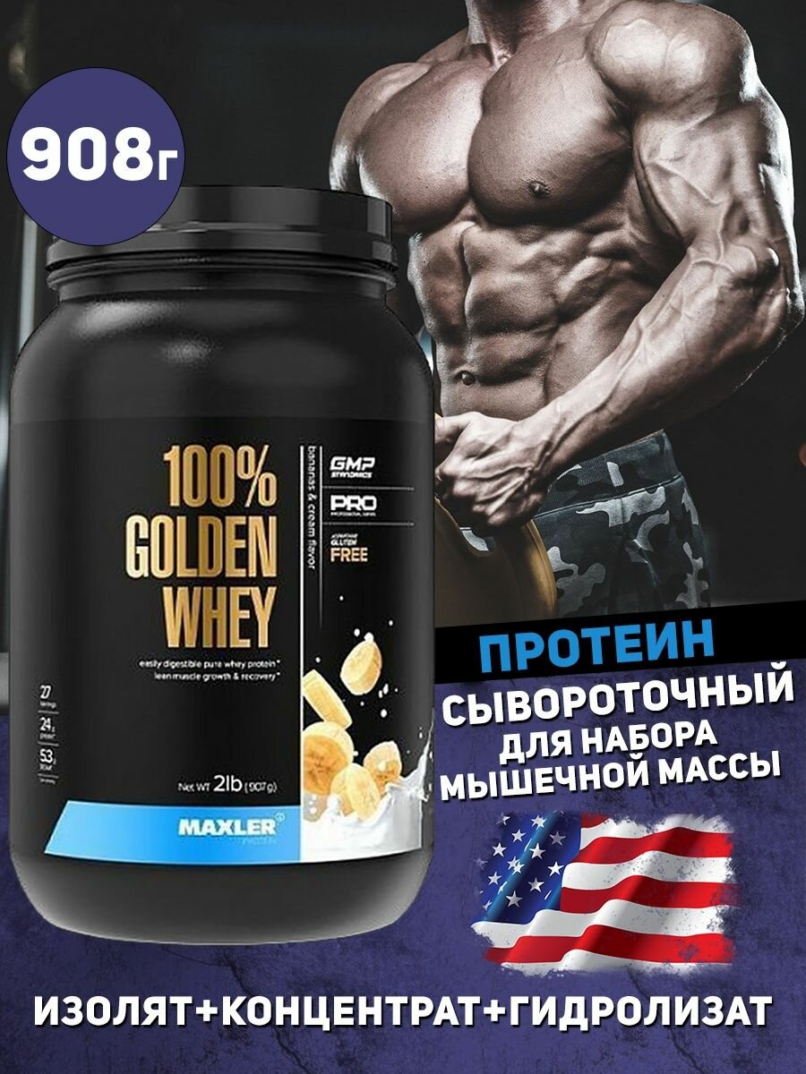 Купить Сывороточный протеин Maxler 100% Golden Whey - Банановый крем, 908г - Рост мышечной массы - Восстановление - BCAA