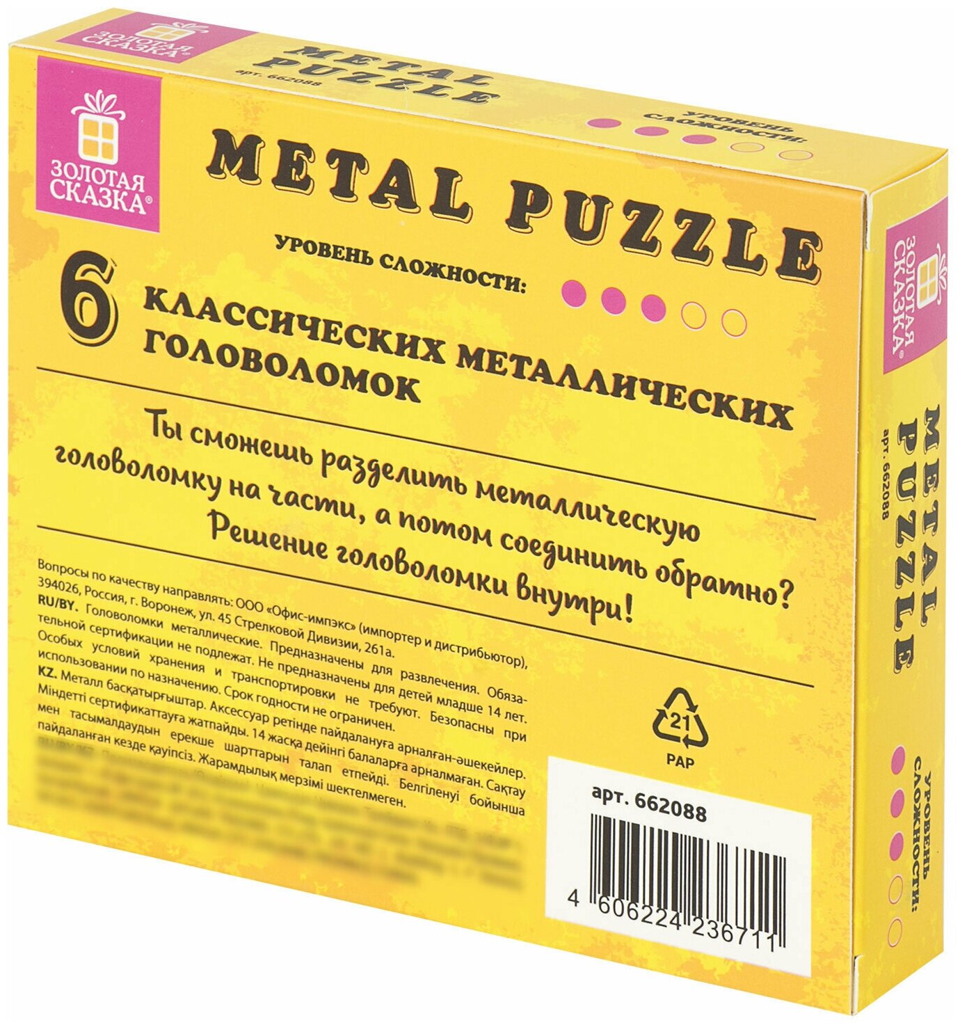 Головоломки металлические золотая сказка (уровень сложности "любитель"), набор 6 штук, 662088 интересное: