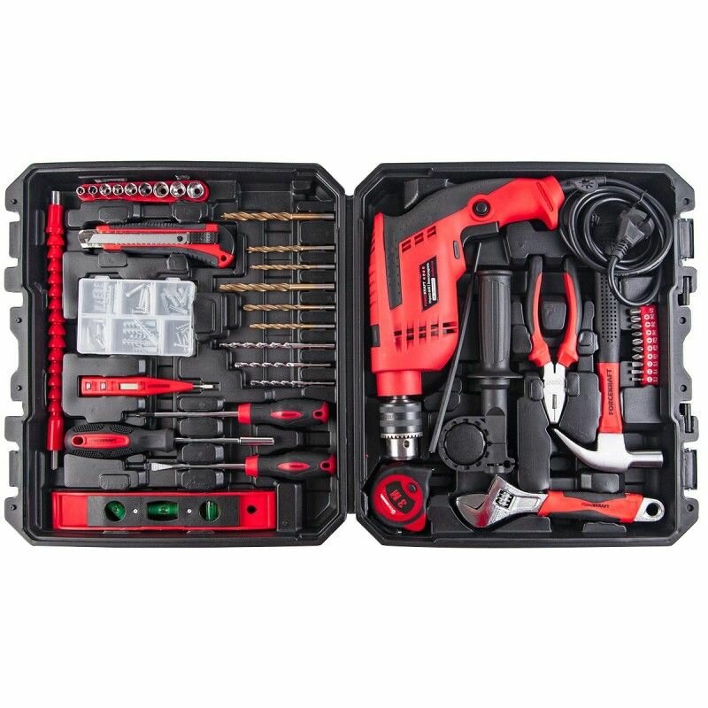 FORCEKRAFT FK-20103 Дрель с набором инструментов электрическая (Z1J-DH11-13B) молток, отвертки,сверла, биты, головки, уровень 100пр.