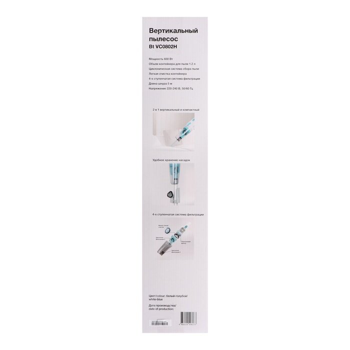 Пылесос вертикальный BLACKTON BT VC0802H 600 Вт, белый/голубой