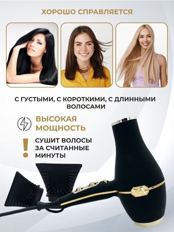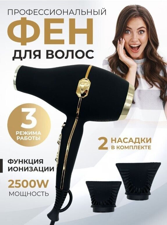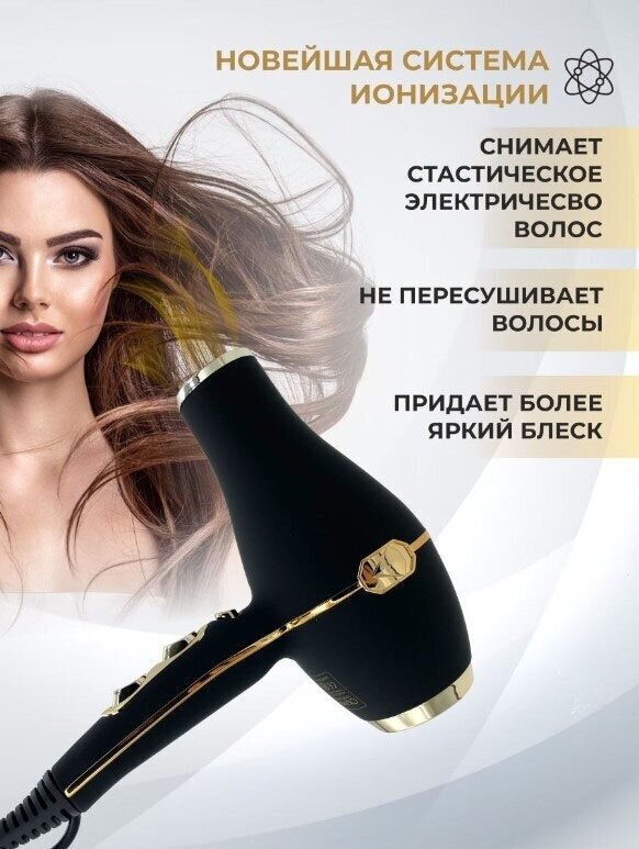 Профессиональный салонный Фен для волос/уход за волосами/для укладки и сушки волос/насадка концентратор/с функцией ионизации/домашний/черный интересное: