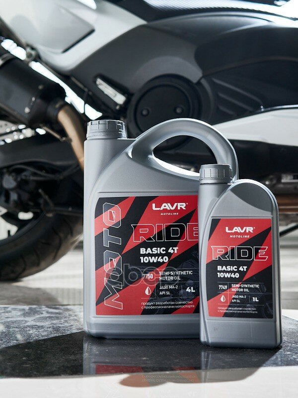 масло lavr 4-х тактное 10w40 ride basic api sl jaso ma/ma2 4л п/с