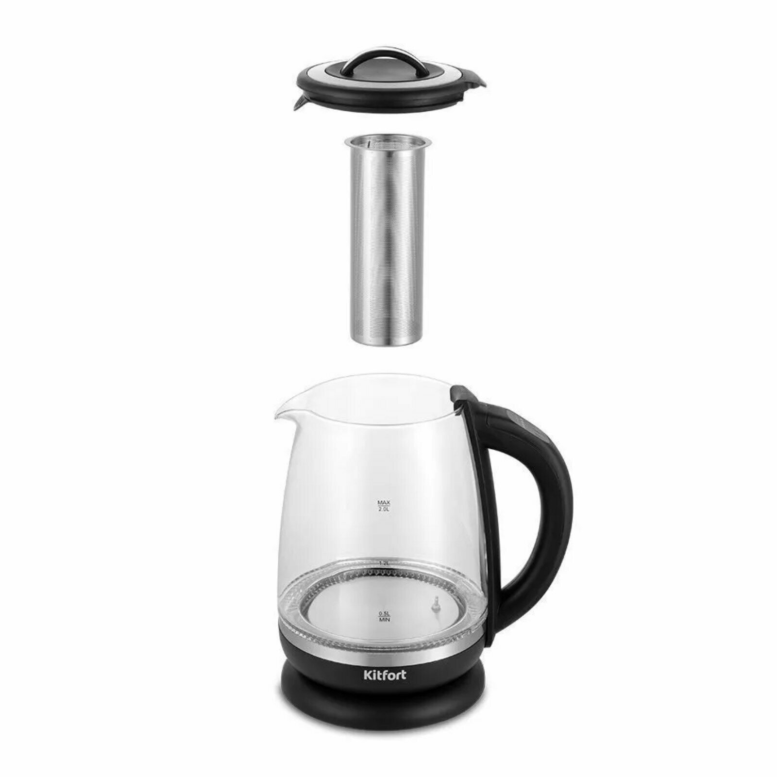Чайник электрический Kitfort KT-6145, стекло, 2 л, 2200 Вт, регулировка t°, чёрный интересное: