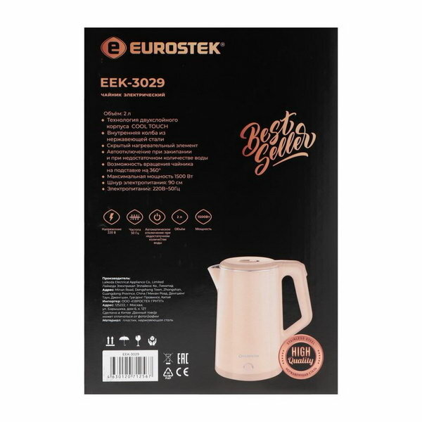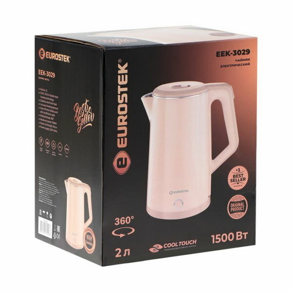Чайник электрический Eurostek Eek-3029, пластик, колба металл, 2 л, 1500 Вт, бежевый EuroStek 977110 .