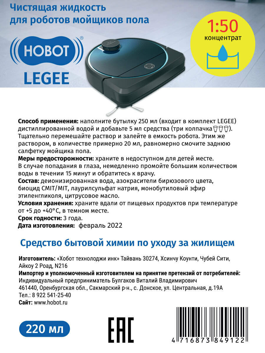 Жидкость чистящая концентрат Hobot LG668A16 250ml для Legee-668 интересное:
