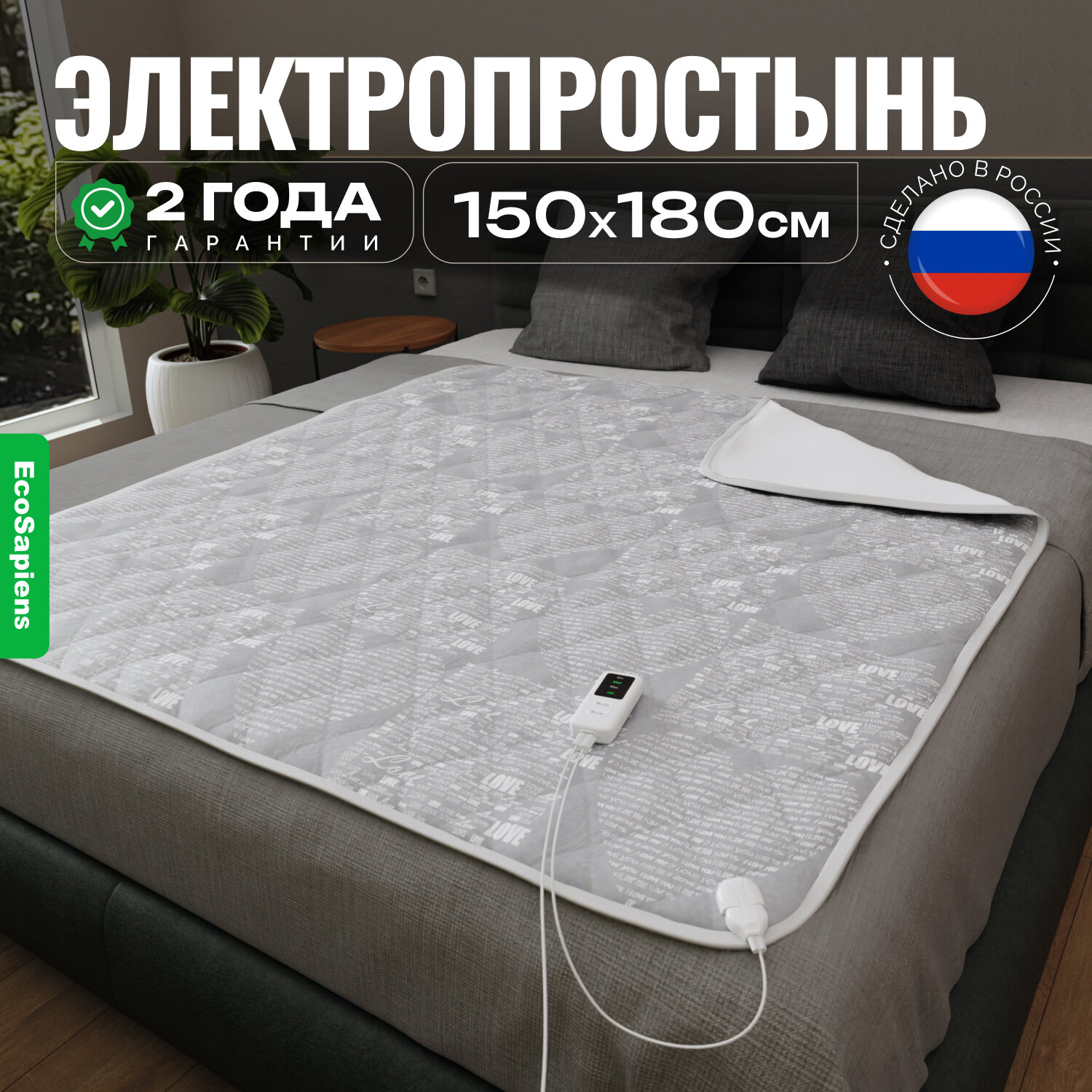 Электрическая большая универсальная простынь с подогревом EcoSapiens Duet, 3 программы нагрева, 180 х150 см интересное: