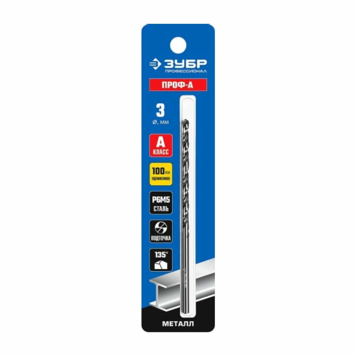 ЗУБР ПРОФ-а 3,0х100мм, Удлиненное сверло по металлу, сталь Р6М5, класс А (29624-3) интересное: