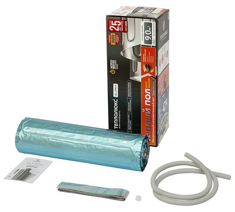 Нагревательный мат, Теплолюкс, Alumia, 9 м2, 1800х50 см, длина кабеля 2 м