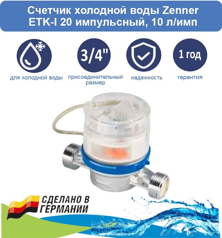 Счетчик холодной воды Zenner ETK-I 20 импульсный, 10 л/имп интересное: