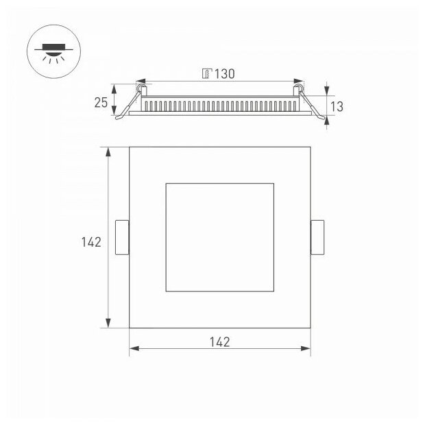 Светильник DL-142x142M-13W White (Arlight, IP40 Металл, 3 года) 020128