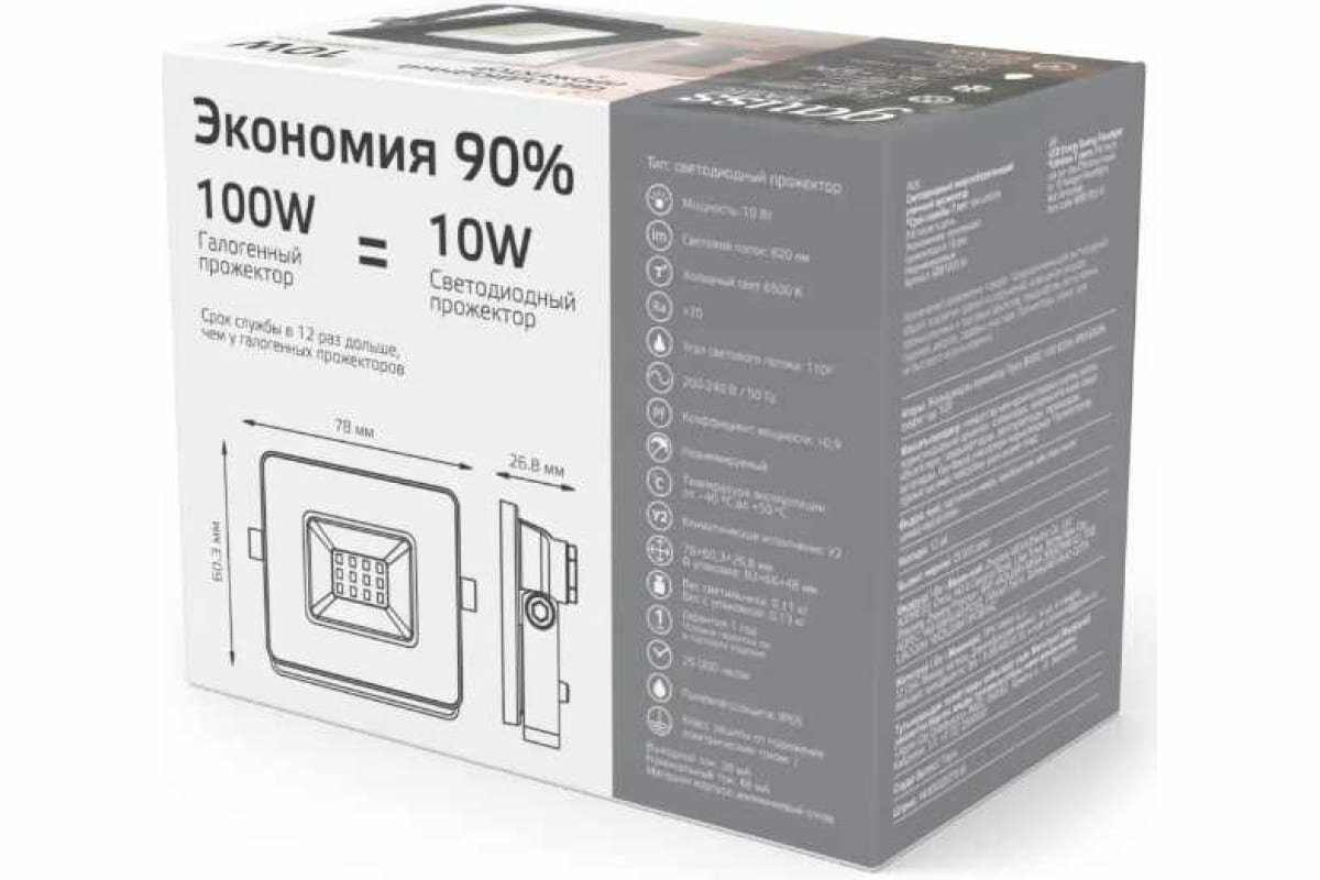 Прожектор уличный Gauss Qplus 688100310 светодиодный 10Втсерый интересное: