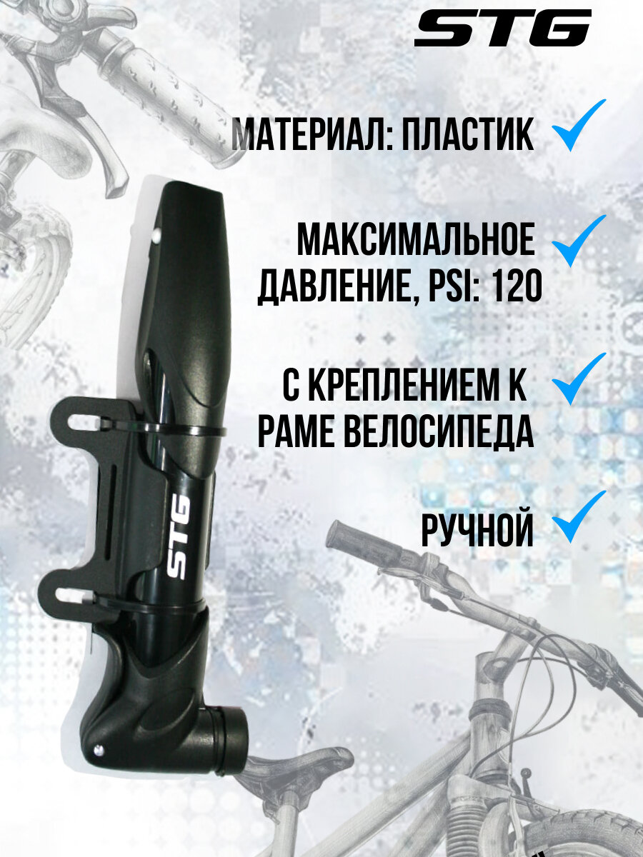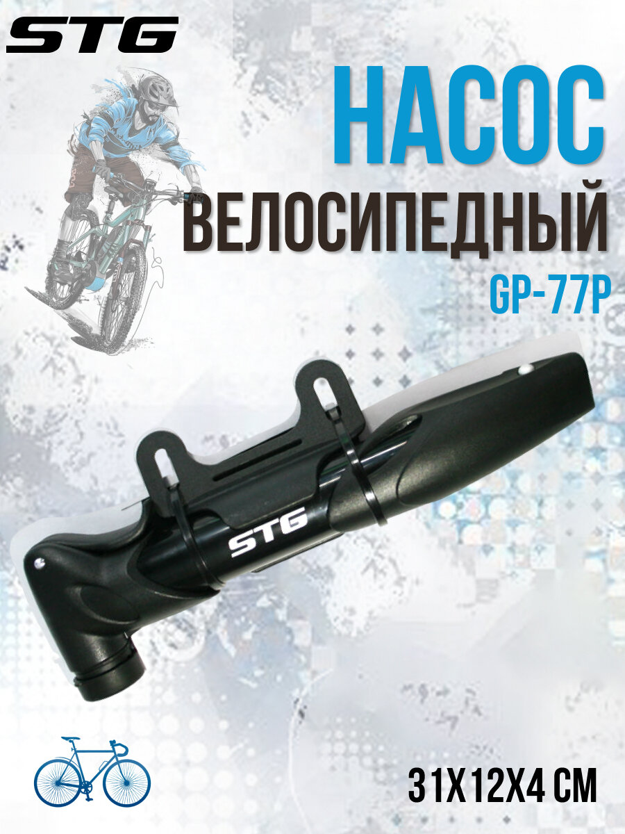 Насос ручной STG Gp-77p, Schrader/Presta, Hv/hp, пластик, черный . интересное:
