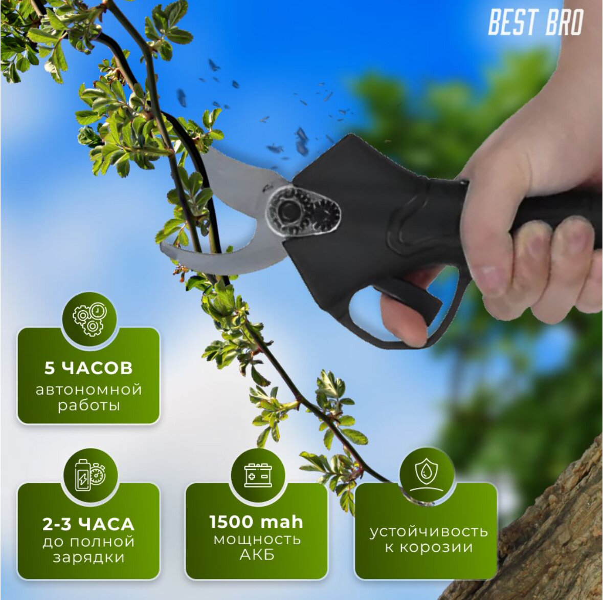 Достаточно мощный чтобы выполнять обрезку веток.