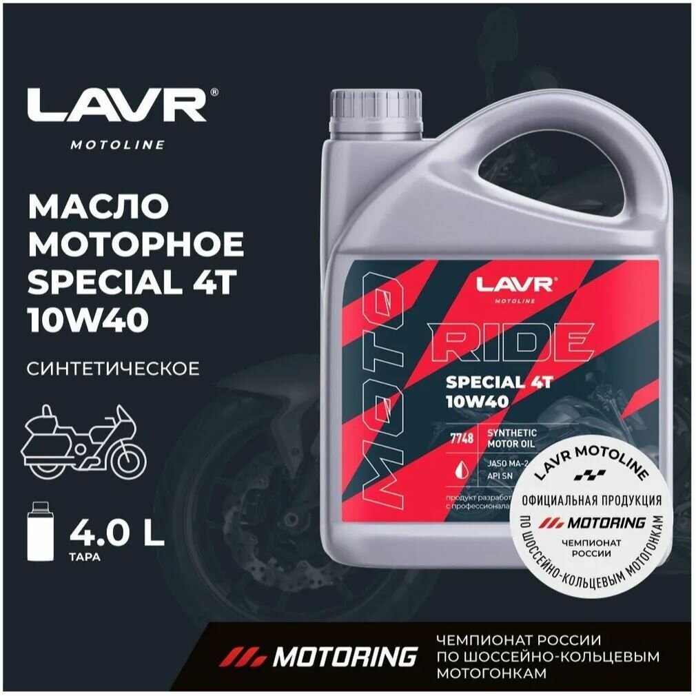 Моторное масло Lavr Moto Ride Special 4Т 10W40 SN, 4 л Ln7748 Lavr 9568834 .