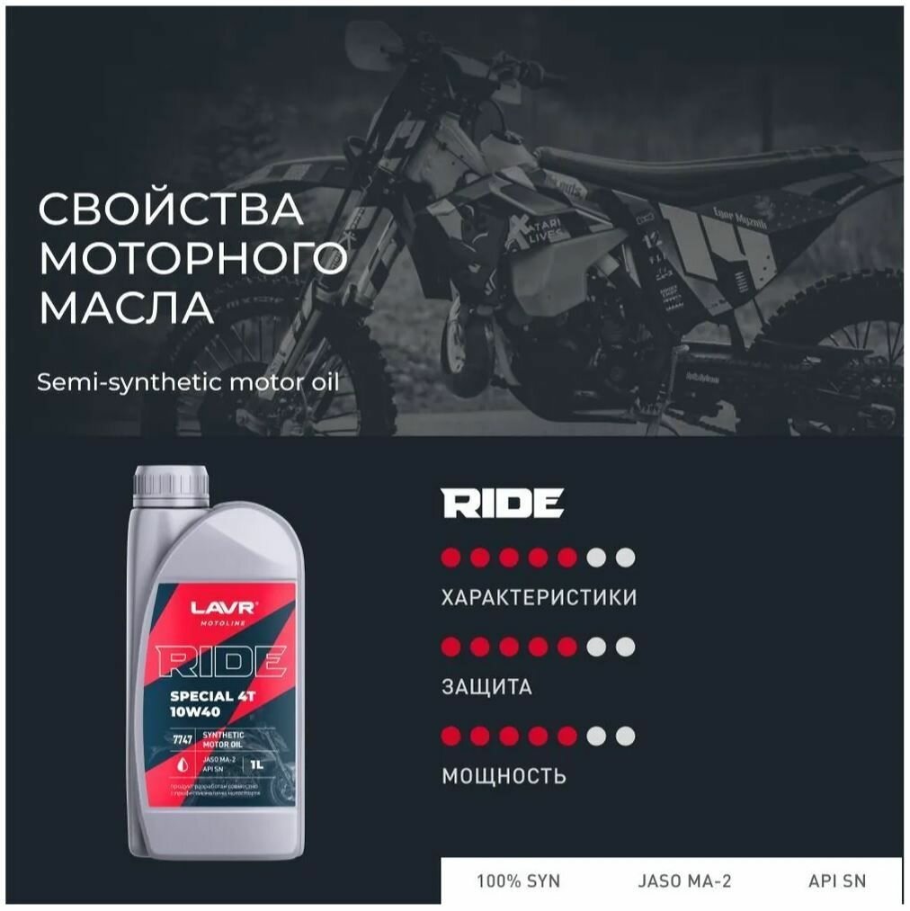 10W-40 MOTO RIDE SPECIAL 4Т SN 1 л (полусинт. мотор. масло) LAVR Ln7747