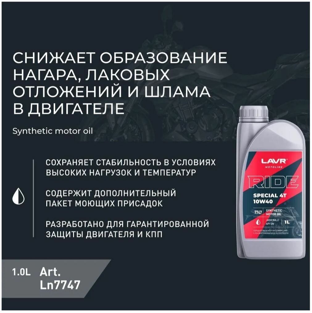 Масло Моторное Lavr 7747 Moto Ride Special 4T 10W40 Sn 1Л Мото LAVR арт. LN7747