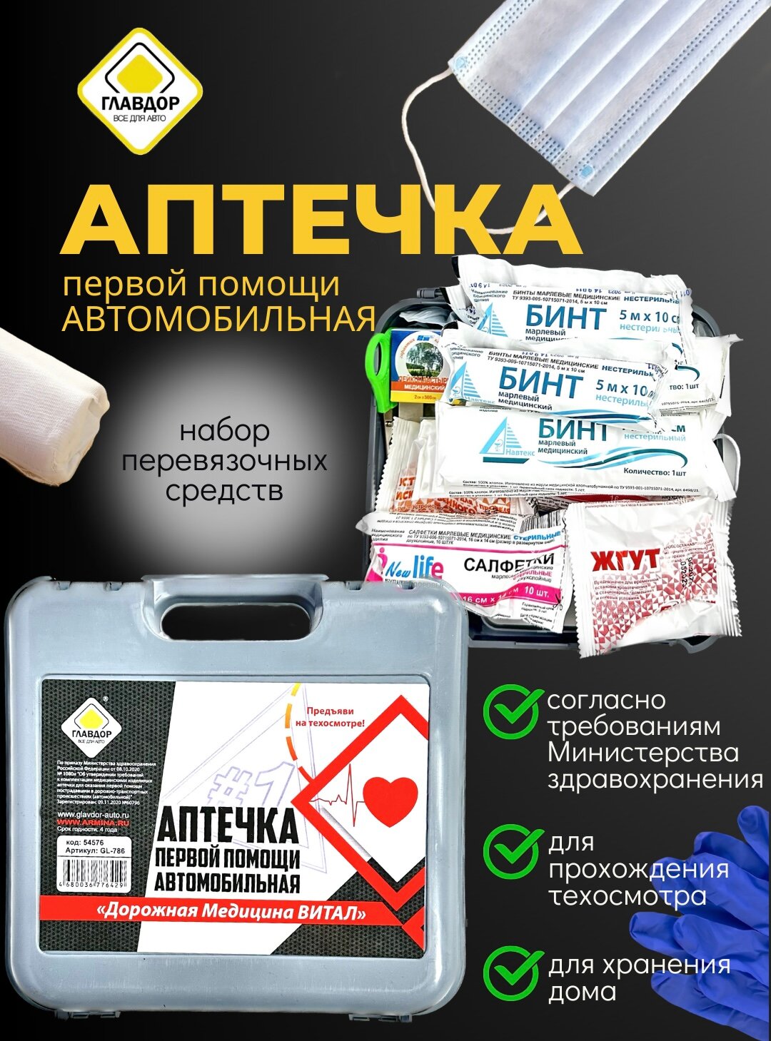 Аптечка автомобильная первой помощи "главдор" GL-786 "Дорожная медицина" (новый состав) интересное: